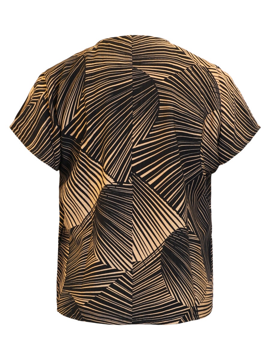 Suloisen väljä ja ilmava lyhythihainen pusero Cisolta! Kiva esim. farkkujen kanssa tai yhdestyttynä mustaan alaosaan. Puserossa on siro, pyöreä pääntie, jossa somisteena nyörit ja nappi, ja lyhyet holkkihihat. Helma on suora ja sen kuuluu olla melko väljä. Pituus koossa M/40-42 on n70cm. Viskoosikangas, joka ei jousta.